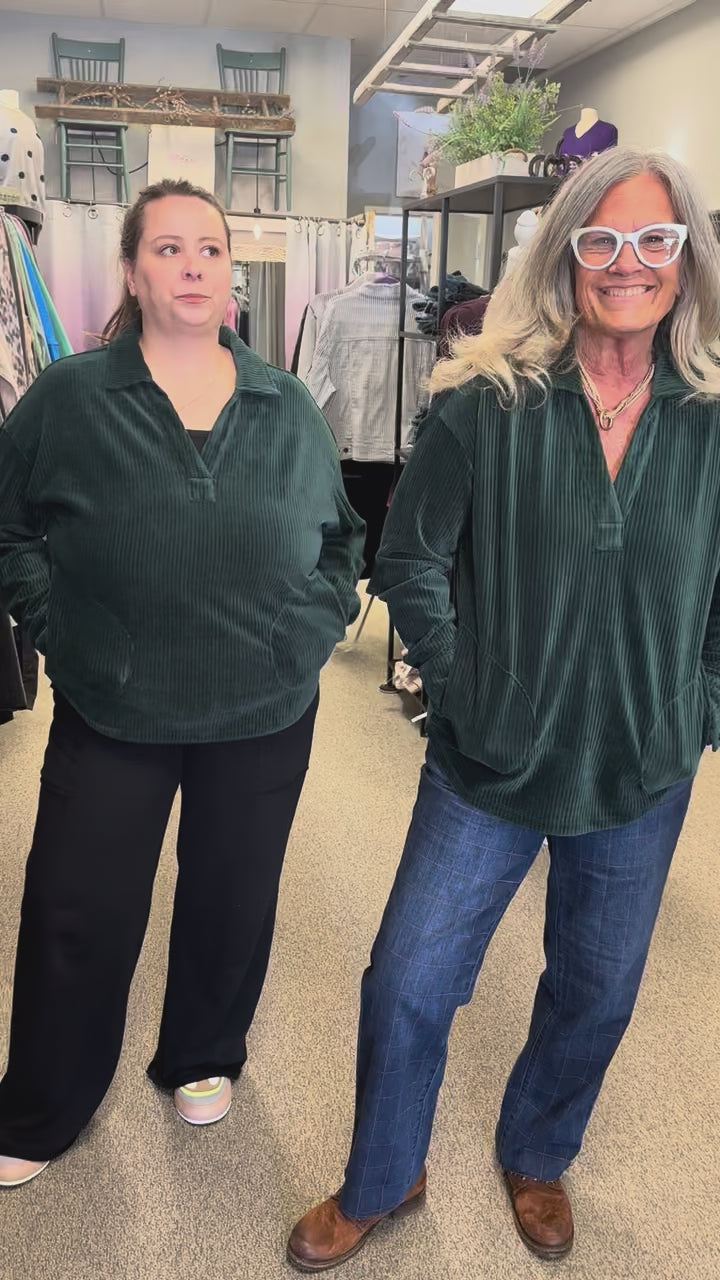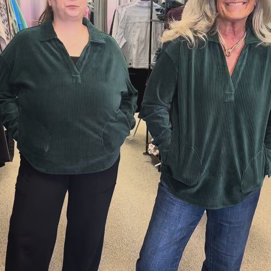 Texture meets versatility in this knit corduroy pop-over. Designed with clean lines, functional pockets, and a relaxed drape, it completes the matching set with an effortlessly pulled-together feel.
