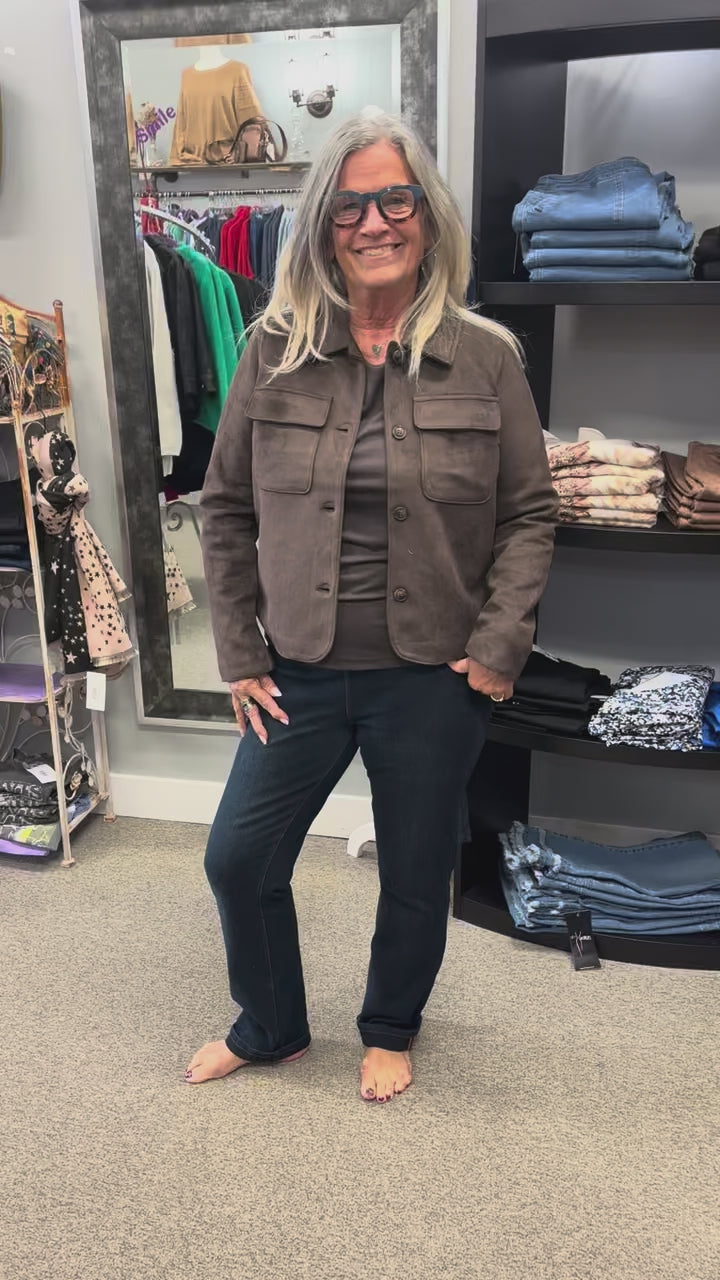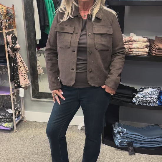 A trending classic with year-round appeal. This faux-suede jacket delivers buttery softness and effortless structure in a palette of timeless hues that work from season to season. Polished, versatile, and endlessly wearable.