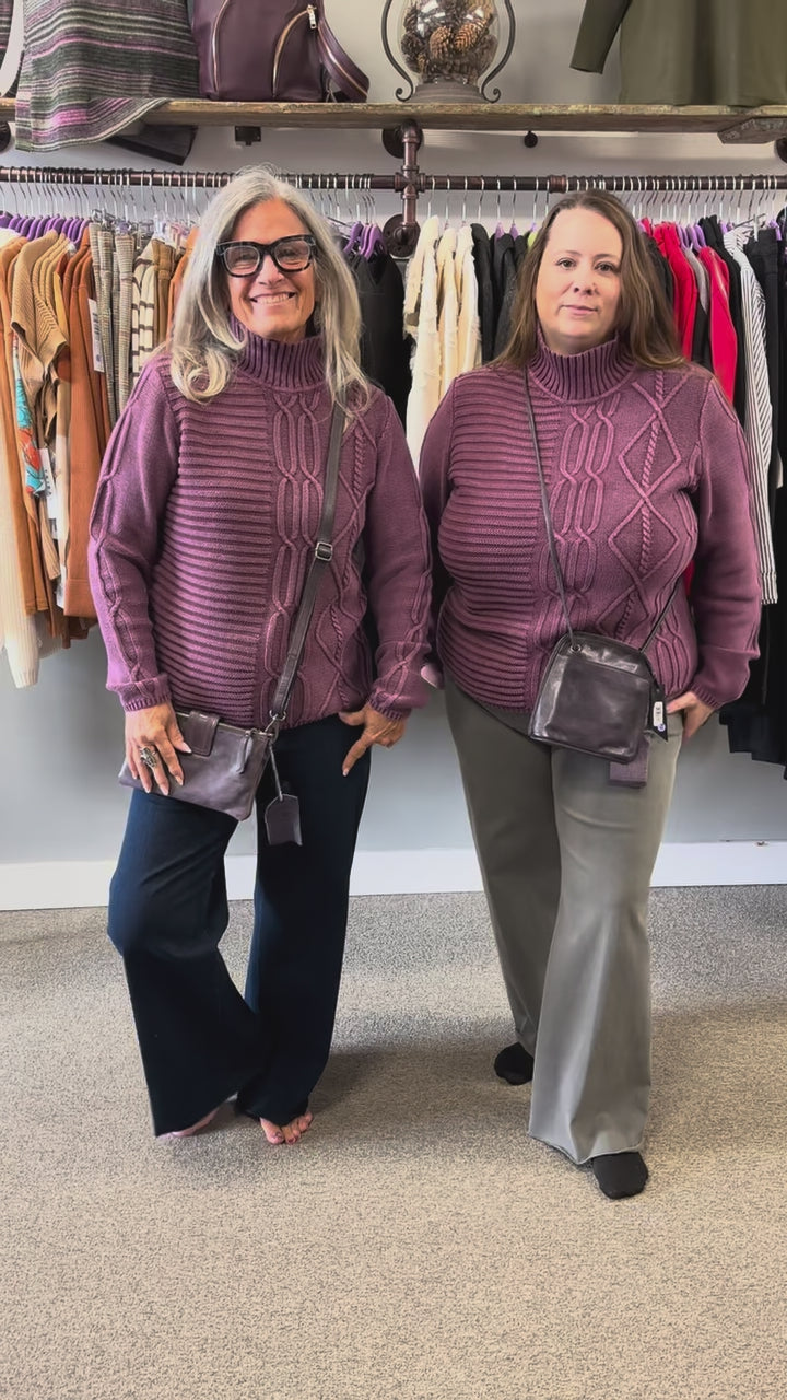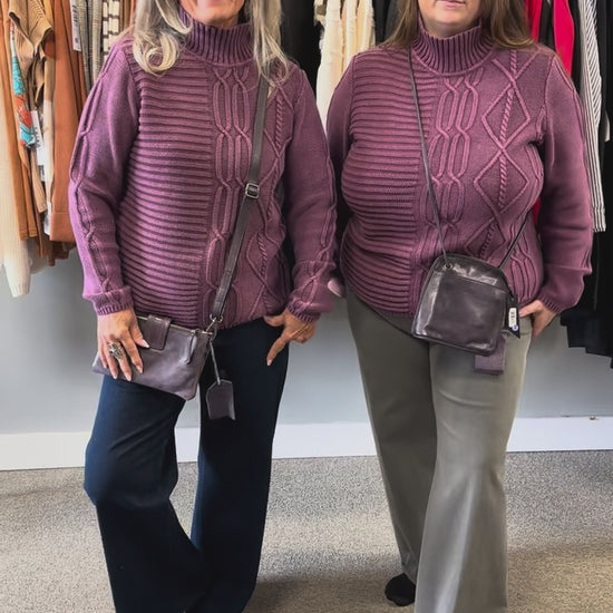 Double zip entry, center compartment with magnetic snap, and handwoven tab detailing provide both security and style. Inside features four card slots and a zip pocket for organized storage.
