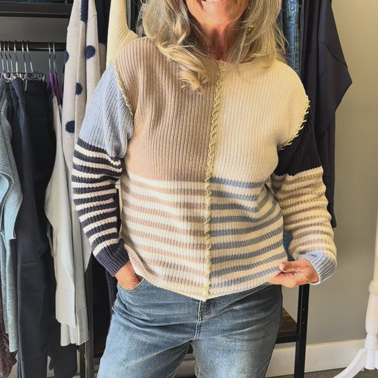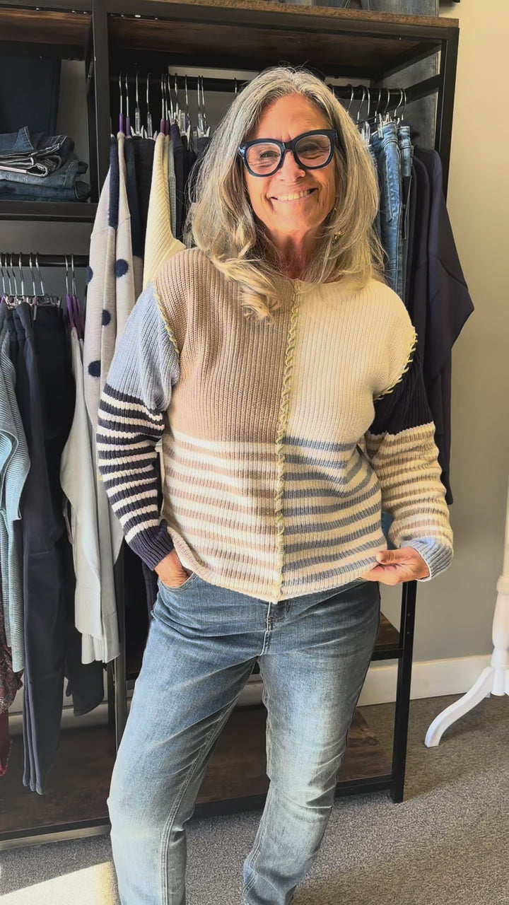 Refresh your look with this sweater featuring a playful multi-stripe pattern. The cozy acrylic blend yarn ensures warmth, while long sleeves offer full coverage. A sweeping boat neckline adds a touch of classic elegance to the design.