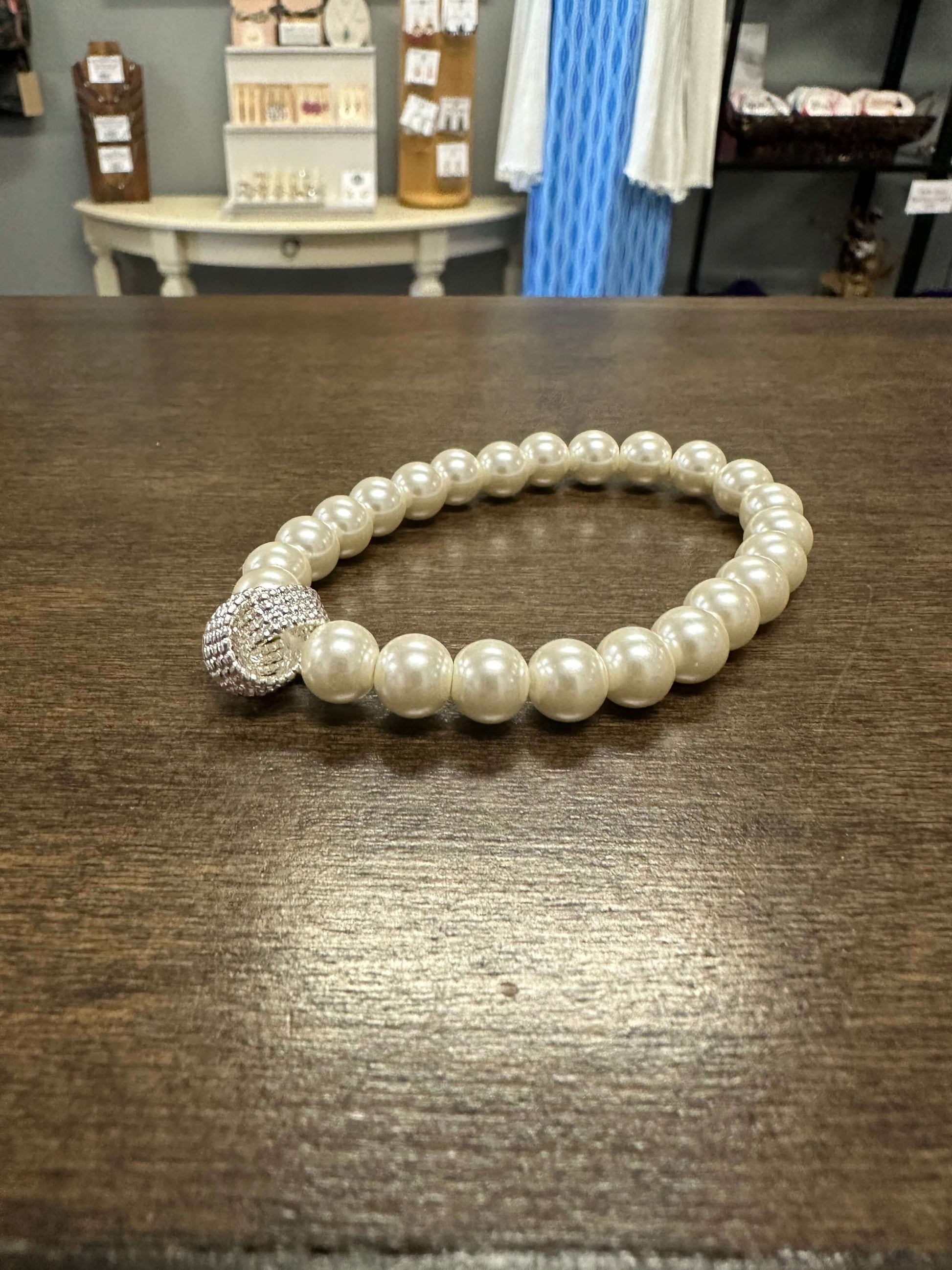 The classic pearl bracelet with a little silver twist. So cute you can wear it with anything.