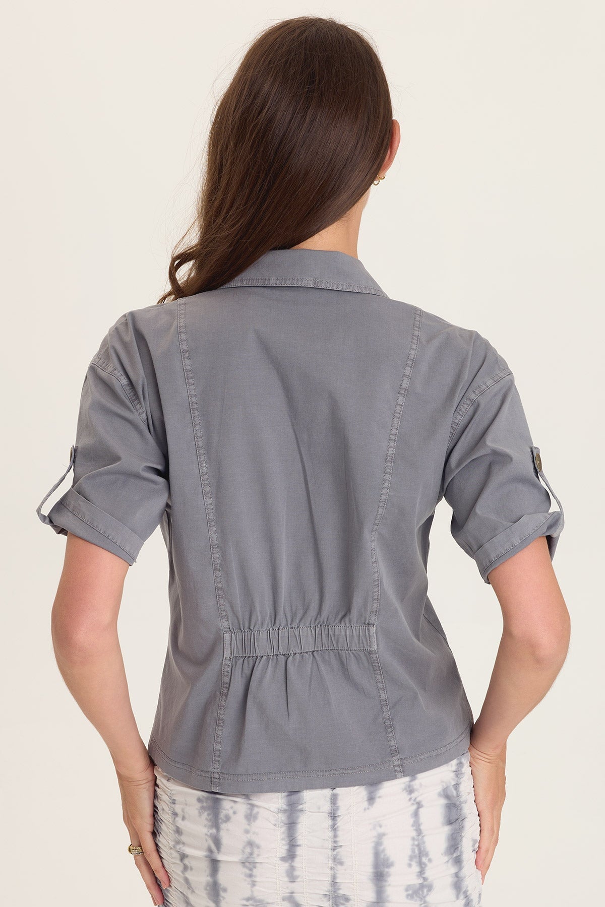 - Elastic cinched waist at back