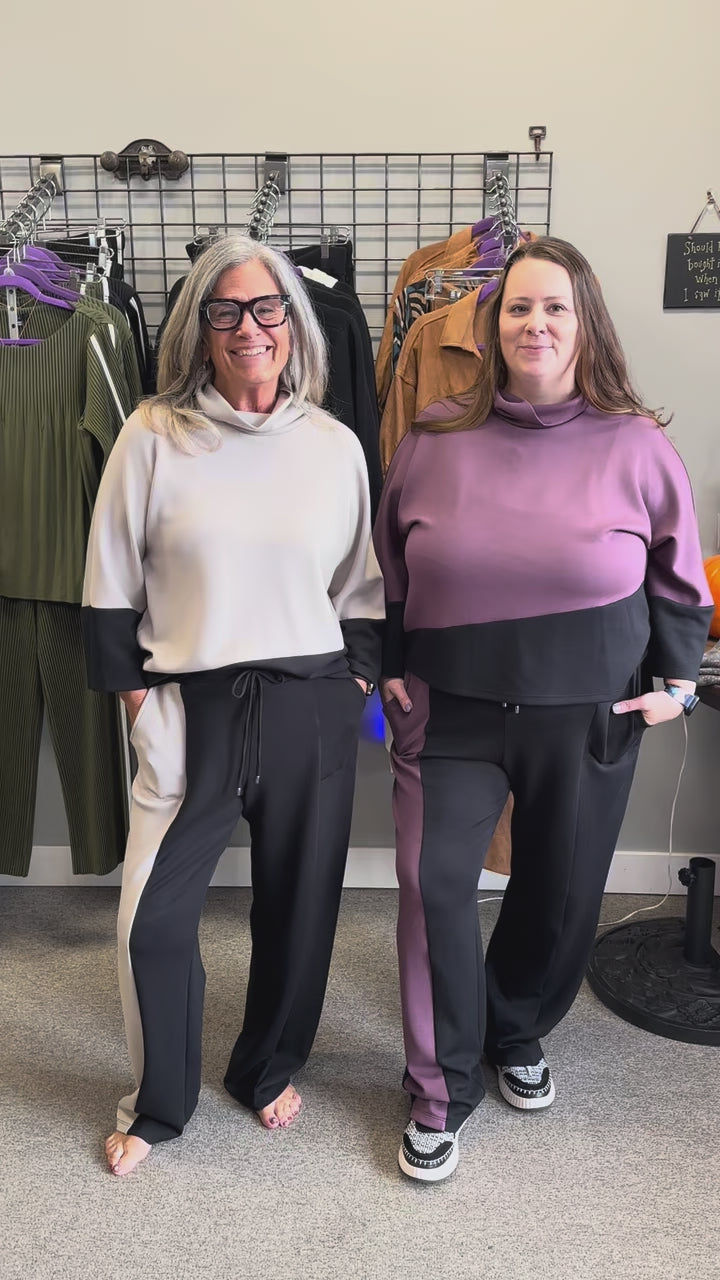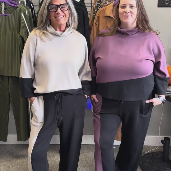 No Two Tone pull on pant, with drawstring, front pockets and a slit wide leg. Super comfortable to worn out and about or lounging at home. And yes, we have the matching top; Two Tone Top.